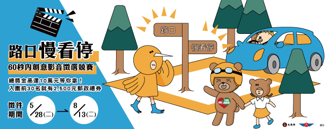 想邀請參賽者們一同用「路口安全3口訣-慢、看、停」為影片主軸,拍攝15秒~60秒的創意宣導短片!希望藉由影像短片,推廣路口安全重要性。期待參賽者能以不同角度,拍攝出有特色、有意義的影片。