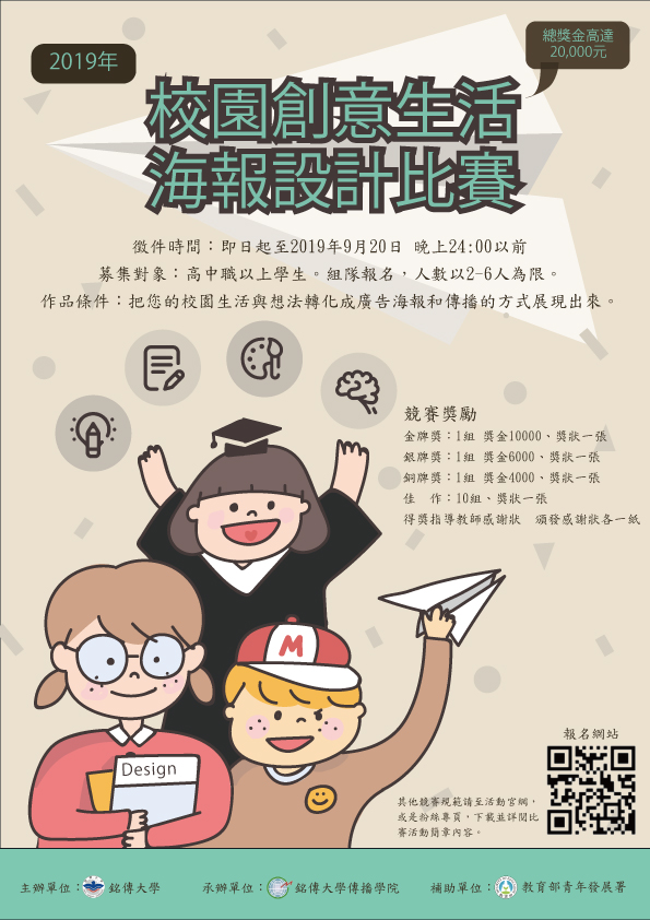 本屆比賽主題為「校園生活」,請有意投件參賽者以此為題發想創作,最高獎金新台幣一萬元,凡報名時具我國公私立高中(職)學歷之學生(含大學、碩博士班),不限國籍,皆可參加。 詳細辦法與報名表,請參考比賽網站http://120.96.128.167/