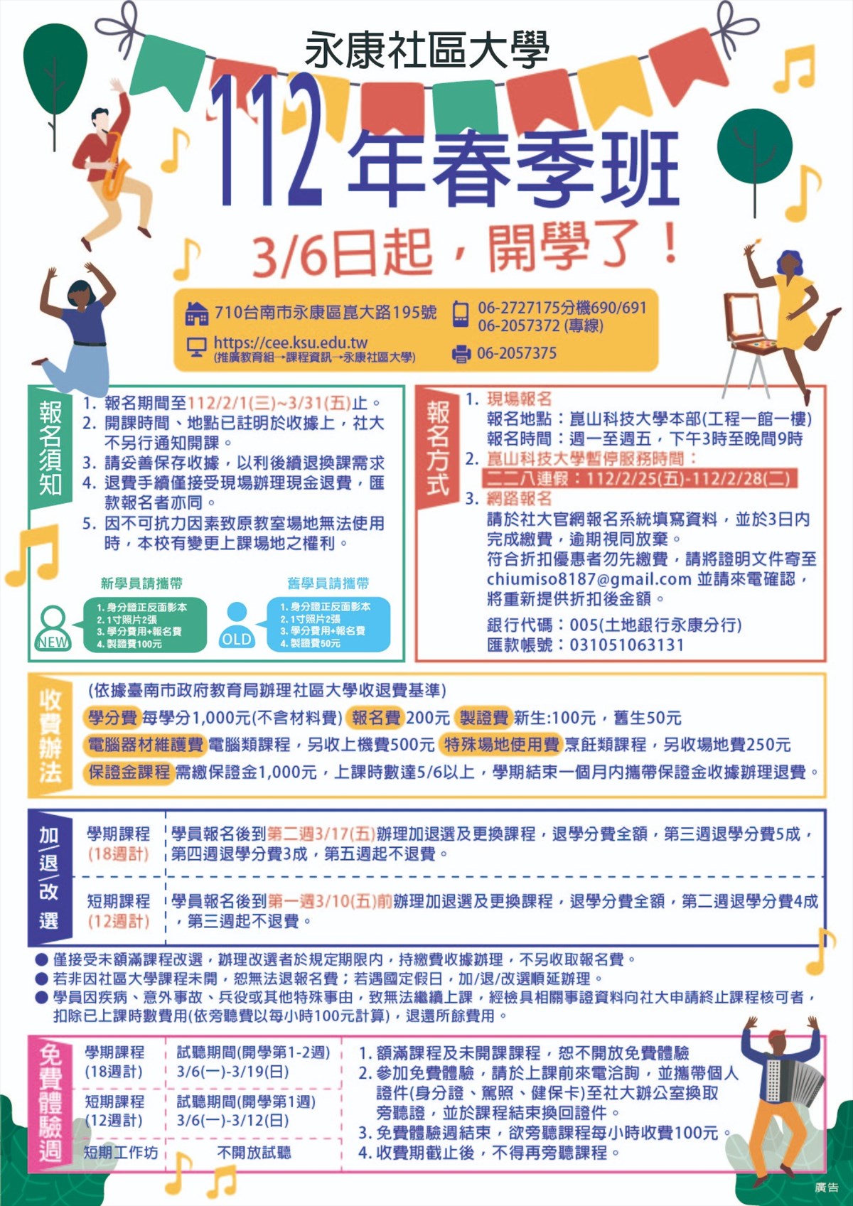 永康社區大學開始招生囉!