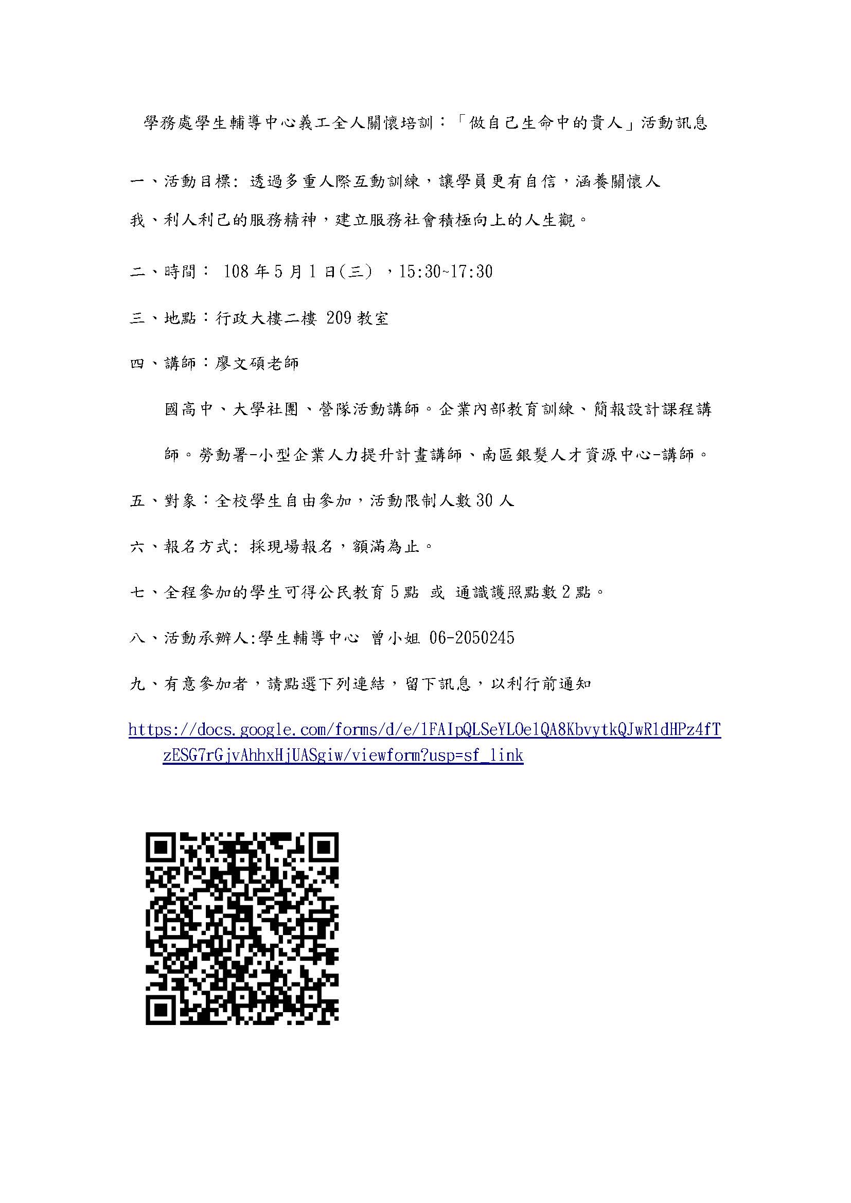 義工全人關懷培訓:「做自己生命中的貴人」