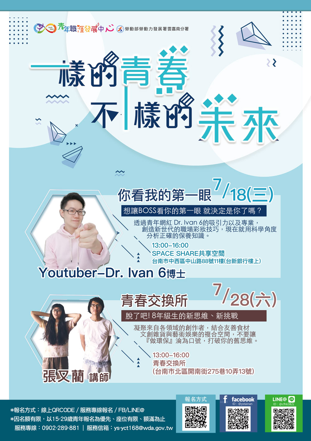轉知勞動部勞動力發展署雲嘉南分署訊息-7、8月份的職涯課程