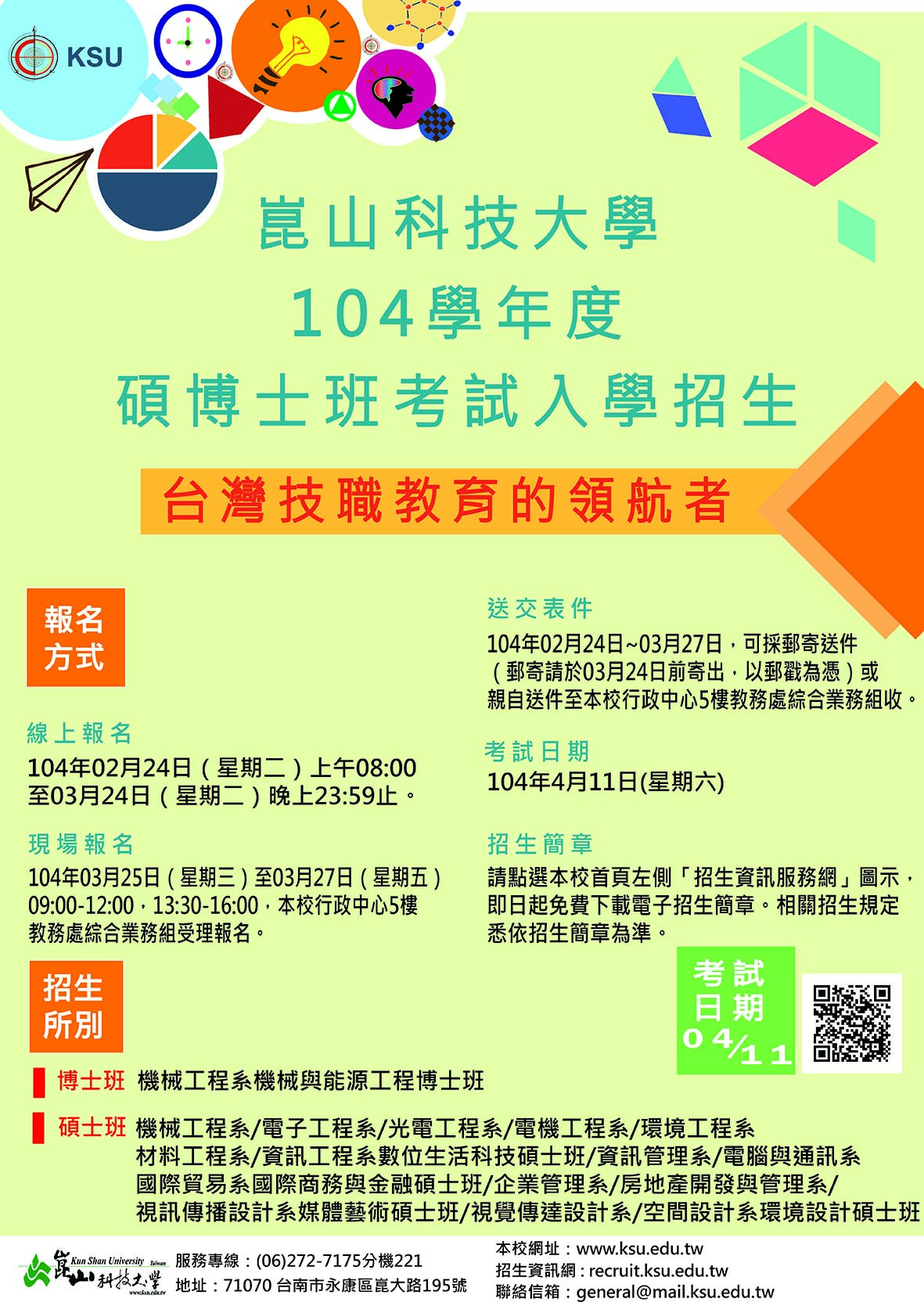 報名日期:網路報名:民國104年2月24日至3月24日止。