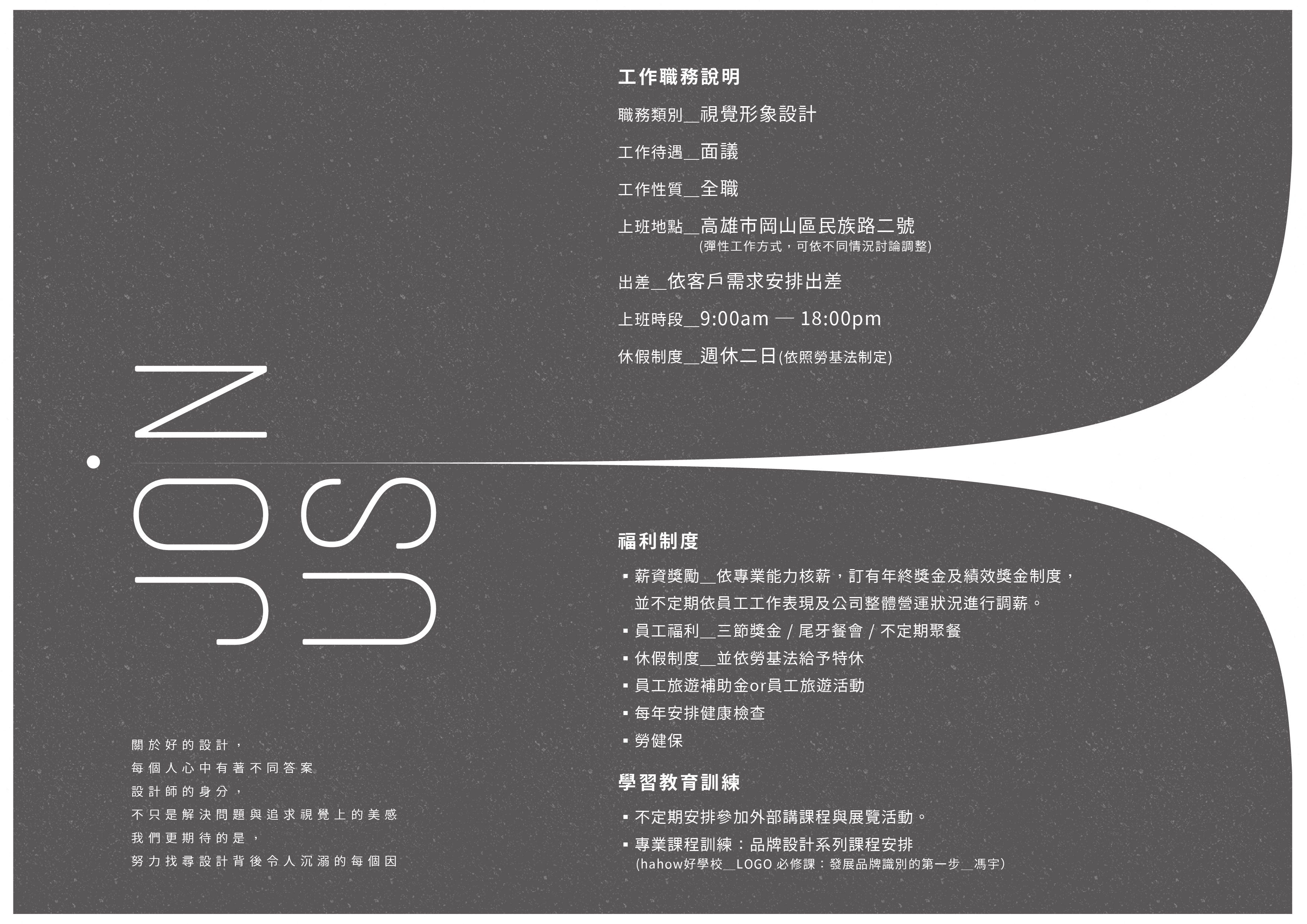 我們是一己設計工作室,誠徵新夥伴,給我們一杯咖啡的時間來聊聊吧!