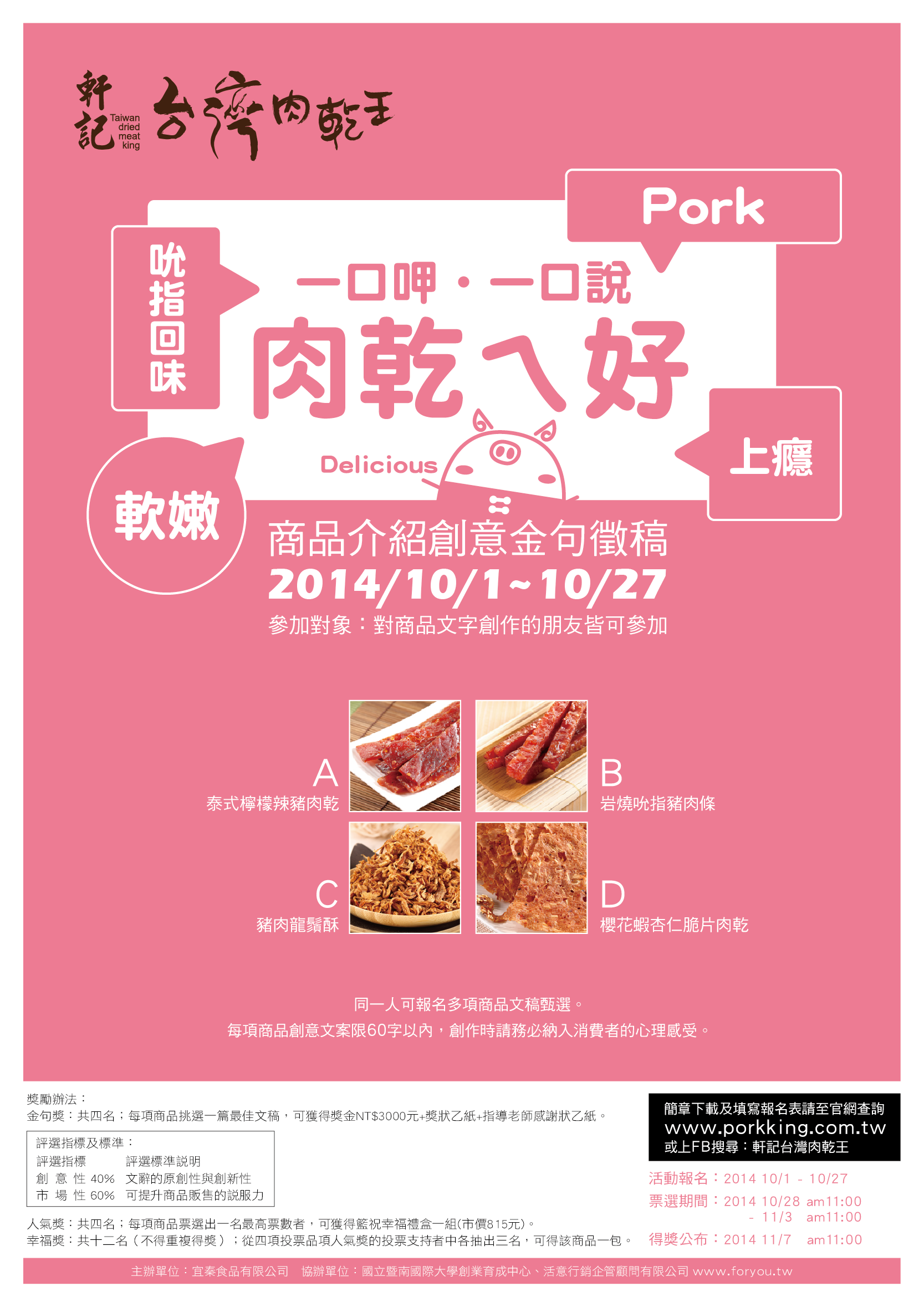 現在邀請您一起來匯集巧思,用妙筆金句和我們分享肉乾帶給您的美味與感動。