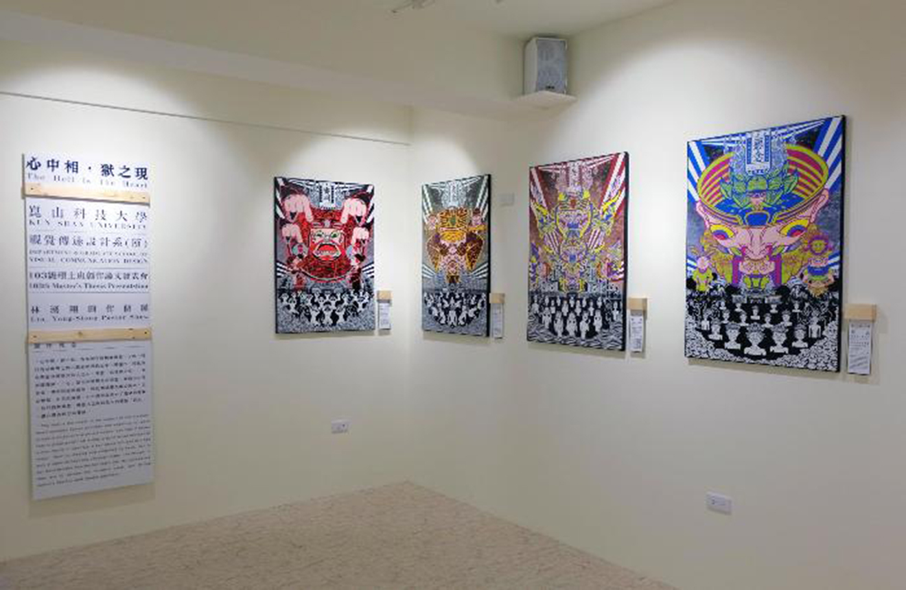此次參與展覽主題,各具特色,將三年中的創作研究,透過三場創作展演,以不同方式呈現。創作展演其一為林湧翔「心中相,獄之現」,以十殿閻王為主題,創作為期十幅系列作品,人的行為與七情六慾透過心來主導,因此善念與惡念都取決於人之心。透過海報創作的形式,傳遞喚起人之所以為人的價值「良心」。